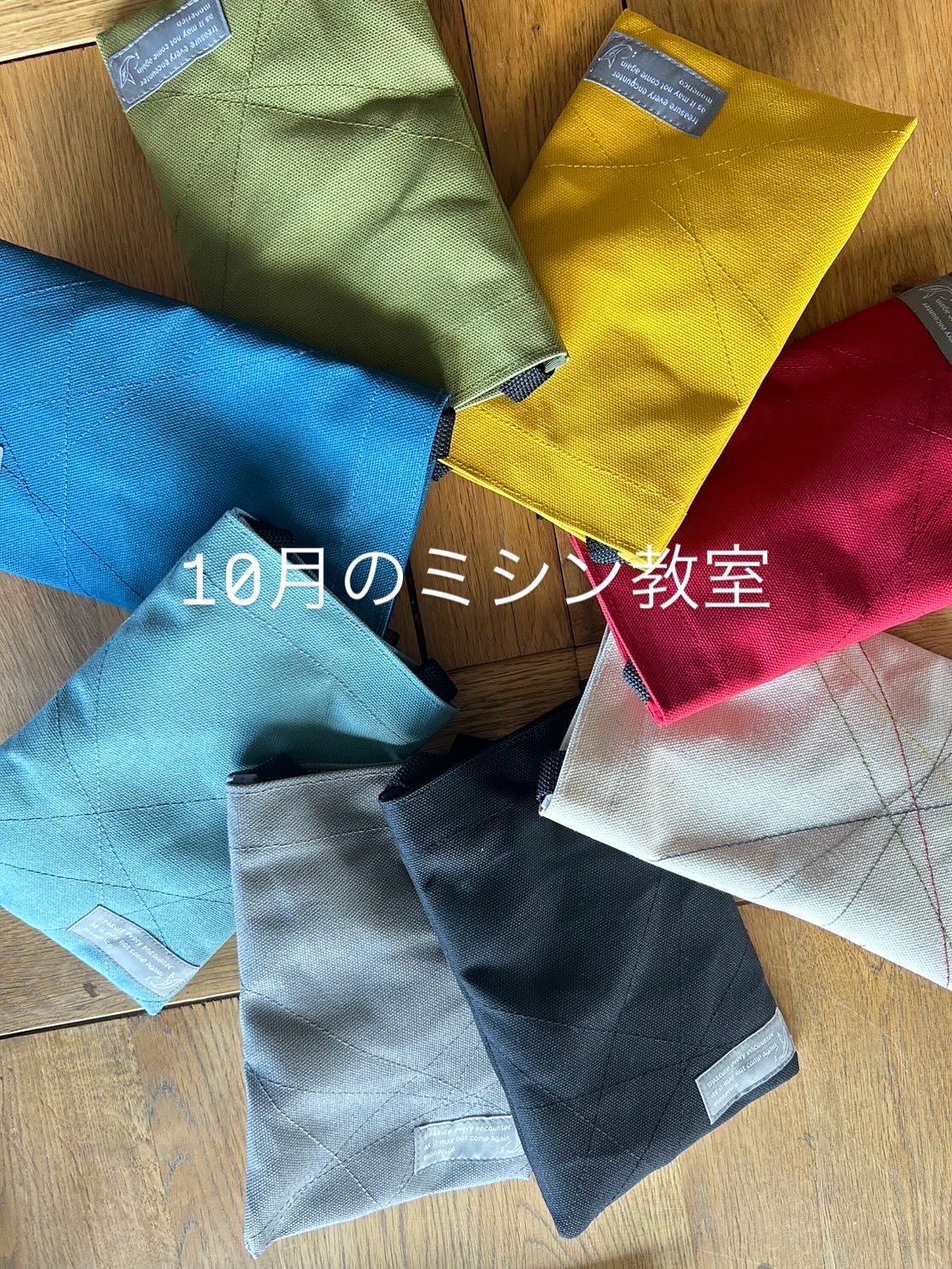 一人1台のミシンを使い、すべて直線縫いだけで出来上がる品をポイントをお伝えしながら一緒に完成させます。